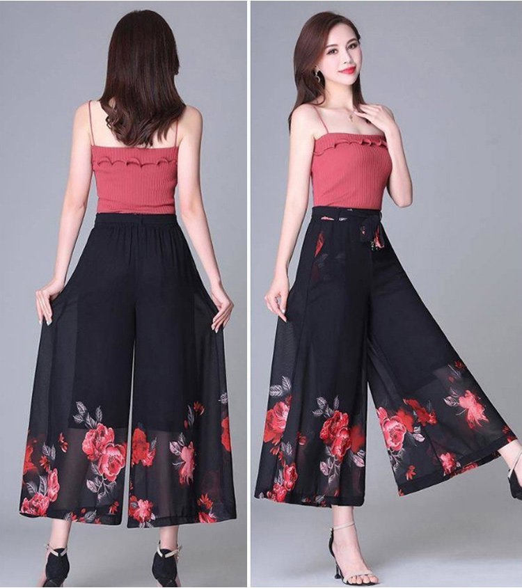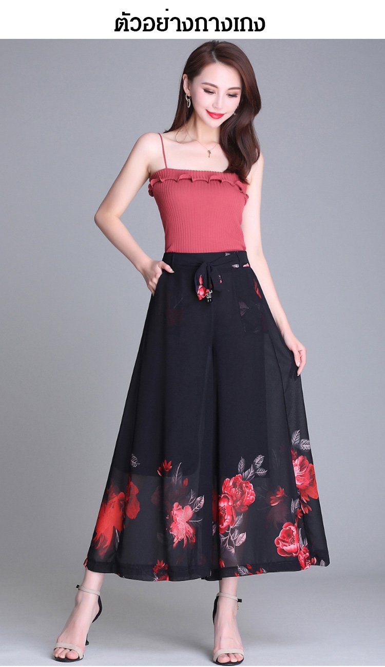 กางเกงคูลอตผ้าชีฟองผู้หญิง พิมพ์ลายดอกไม้